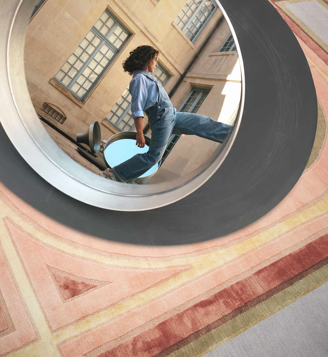 The shapes and motifs of the rugs refer to the art of the past while offering a new perspective on it — both literally and metaphorically.