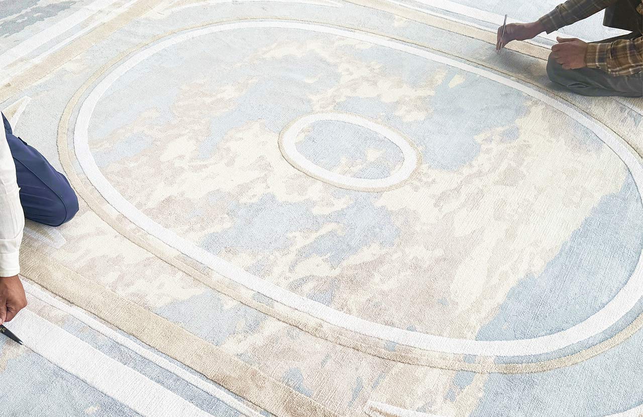 All rugs were hand-woven in Nepal using wool, silk, and cashmere. The dyeing process was also done entirely by hand, with Pierre Gonalons personally overseeing each stage to ensure perfect color precision.