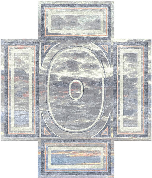Reflecting on these unique examples of decorative architectural art, Pierre sought to transform them into another medium — translating their geometry and ornamentation into rugs. Thus, each rug, much like a coffered ceiling with its molding, becomes a symbolic frame within which an interior composition unfolds.